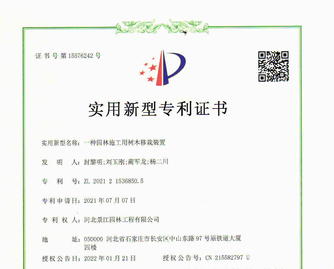 一种园林施工用树木移栽装配